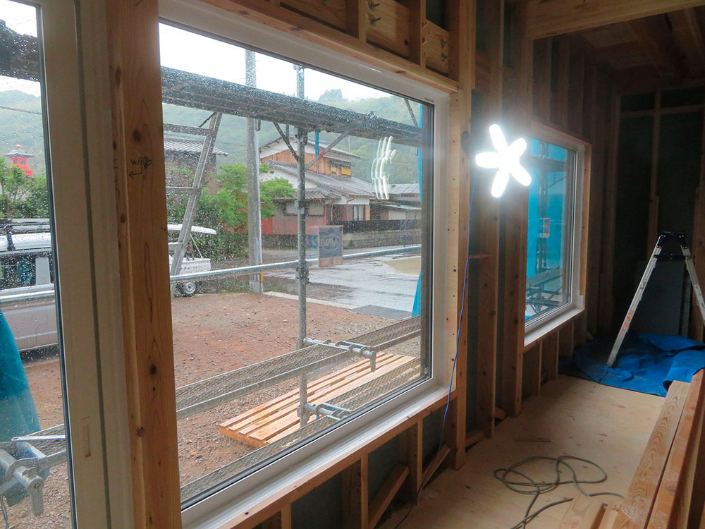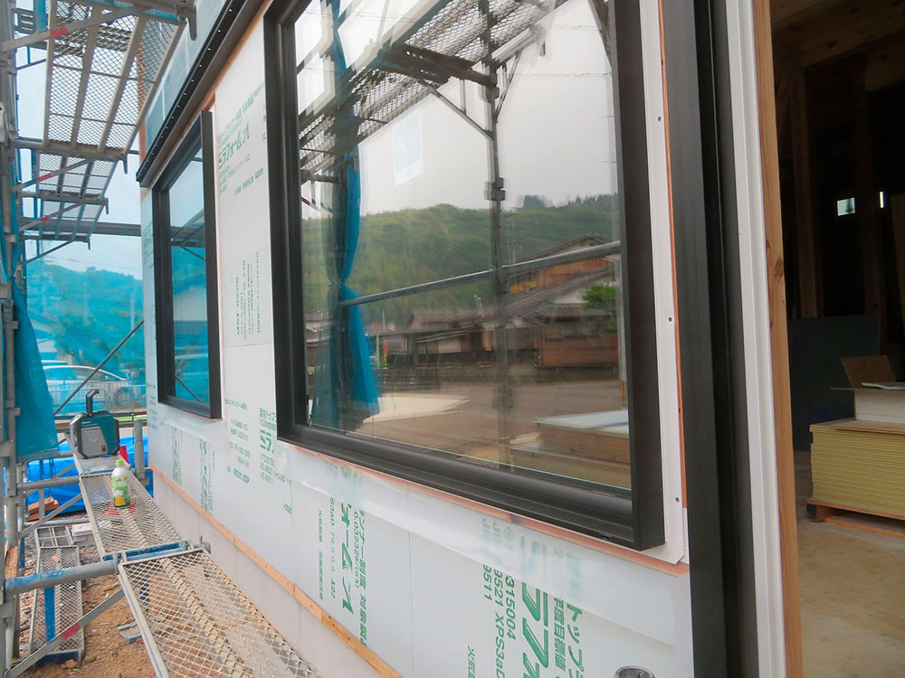 窓の取付をしています。