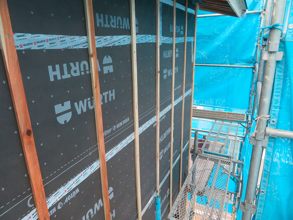 透湿防水シート施工 通気胴縁施工