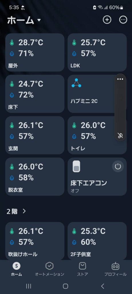 各部屋の室温が