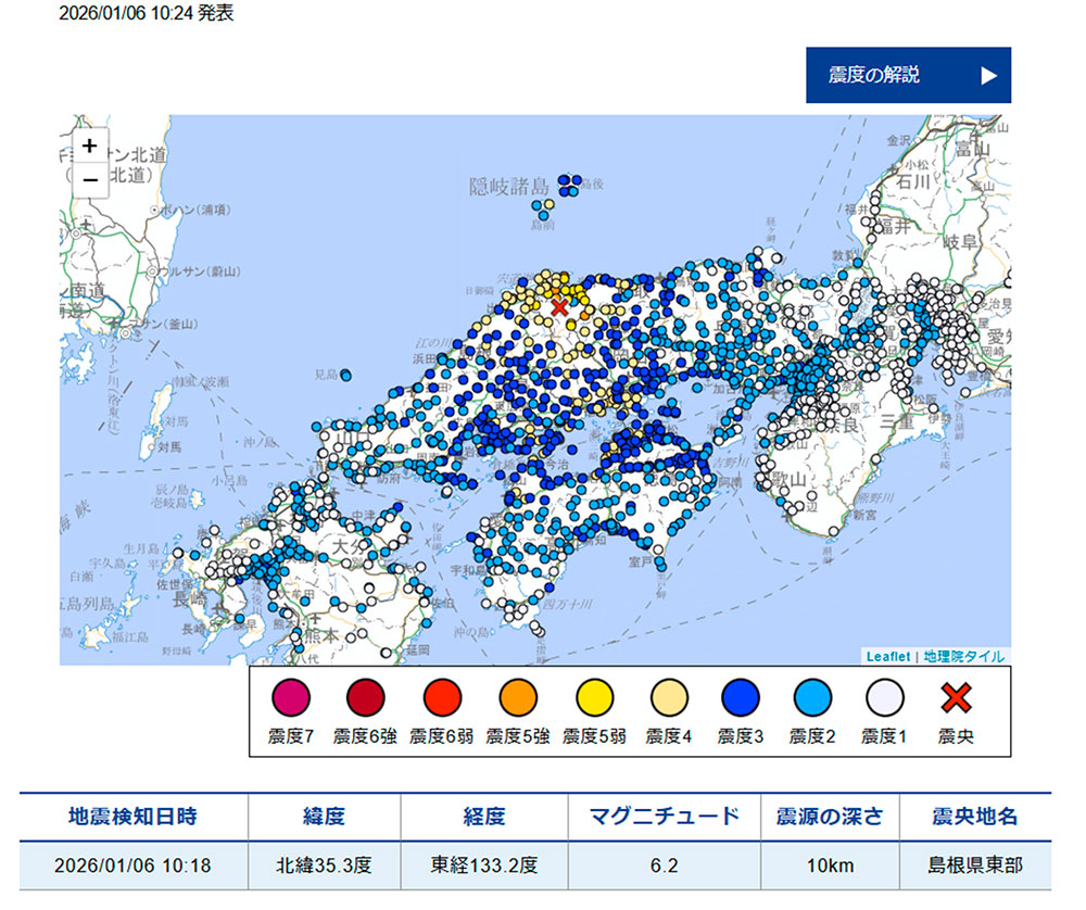 今日の鳥取県地震が